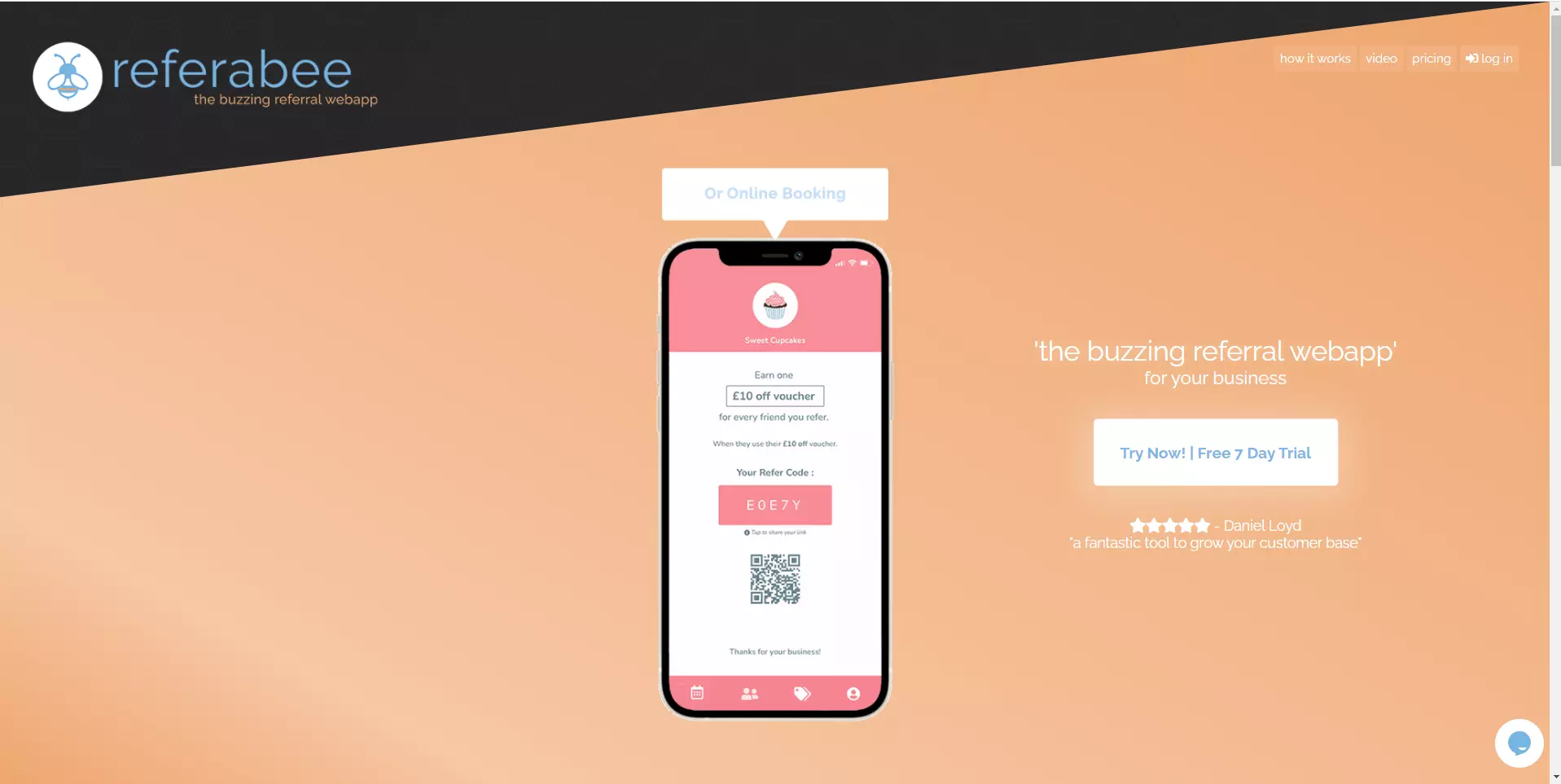 Referabee allows any business to create a web app simply and quickly in their branding. This fantastic little web app allows your customers to build up the rewards you set, by referring their friends.